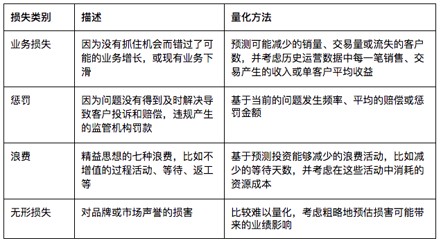 量化并不总是容易的,需要有足够的历史数据积累。比如,前面例子中的单笔交易平均金额、单客户平均收益等,投资产生的影响要能反映到这些可量化的损失,有时候这很困难,或者量化分析本身的成本过高;要求投资产生的影响有一定可预测性,这使得该方法比较适用于企业的成熟期或成长期业务。对于探索期业务,因为不确定性很高,量化预测非常困难,因而不太适合;延迟成本方法可能驱动决策者过度从财务角度做决策。以客户中心的原则,意味着从客户价值角度分析投资成效比从企业效益角度衡量更重要,包括客户体验和喜爱程度等非直接效益价值。但延迟成本方法更多是从可量化的企业效益角度考虑,容易驱动决策者过度思考短期财务收益。