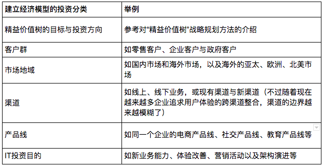 具体采用哪种分类法来指导投资,需要考虑组织所处的行业、领域、商业模式,以及投资决策发生在组织中的层级。举个例子,一家银行可能在企业战略层先按业务的三个地平线进行分配;然后在对成熟业务的第一地平线中按零售、对公和同业等不同客群方向进行分配;再进一步,在零售方向的成熟业务中,将举措按IT投资目的分类,达到业务、市场和技术演进的相对平衡投入。