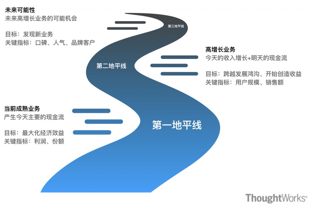 麦肯锡提出的“三条地平线”理论,将企业的投资按照其所处的创新生命周期阶段,划分为第一、第二和第三地平线,每个地平线业务的区别如图1所示。企业必须要能并行不悖地管理好对成熟期、增长期和探索期不同阶段业务的投资,才能可持续发展、具备足够的适应力。要做到这一点,首先就是要保证对各个阶段业务相对平衡的投资。