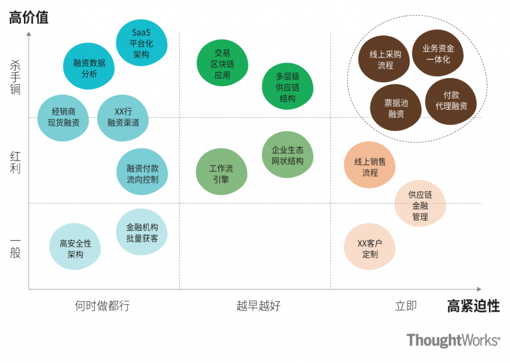 关键二象限矩阵,就是以两个最重要的优先级考量因素,作为大家讨论优先级的共同语言,在两个不同维度方向上相对比较各项投资举措的优先级顺序,而暂时忽略掉其它次要因素。