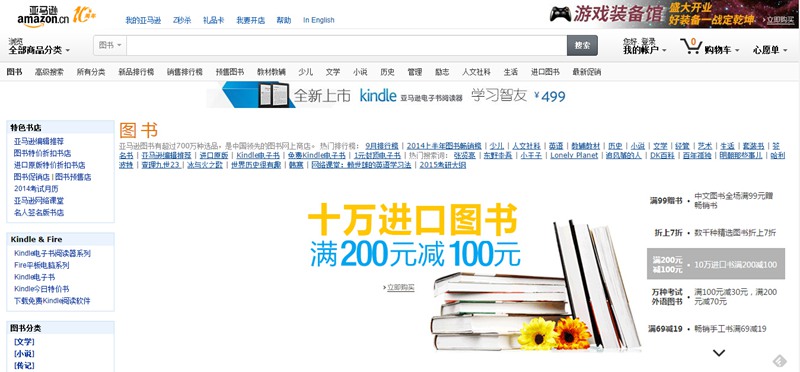 这时候再到亚马逊的图书首页上看,已经完全不一样了: