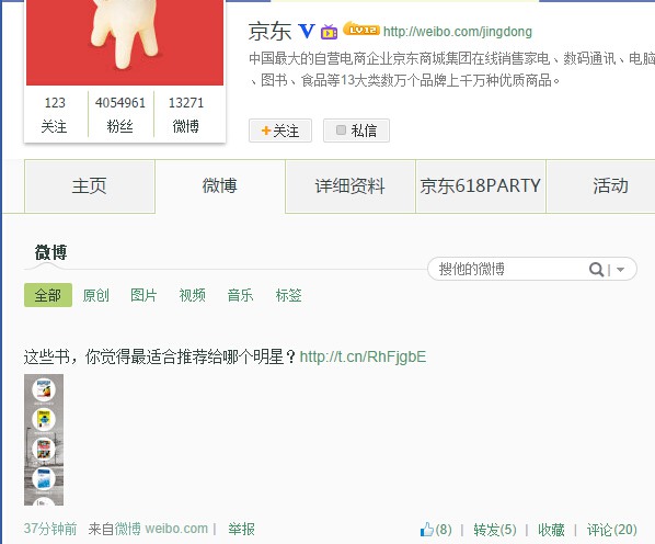 我们又去新浪微博上看了看,发现在网站上反应最快的京东,在微博上却没有任何反应。