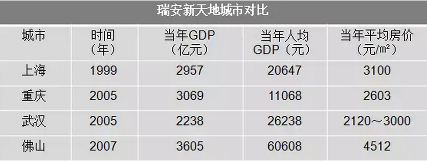 由此可以看出,新天地落子之时,共同点在于:经济处于起飞阶段,人均GDP突破两万,房价不高。