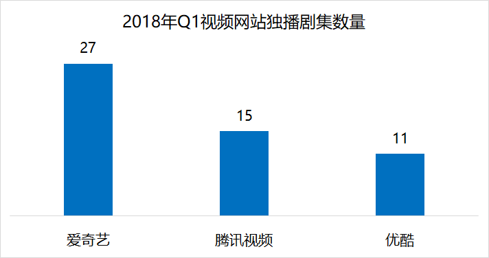 若说宽泛意义上的上新总数,体现的是平台在免费观看领域的“不缺席”,那在平台差异化竞争潮流下,独播剧的数量和质量则是平台维持用户留存,提高观众忠诚度的重头戏。从数量上看,一季度爱奇艺独播剧有27部,比腾讯视频和优酷合计26部的数量还要高。