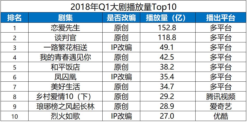复盘2018Q1全网剧市场,网播平台该如何先发制人:规模效应之外,怎样放大精品剧集的头部流量吸附力?自制风潮席卷之时,又该如何站上题材偏好转型的风口?