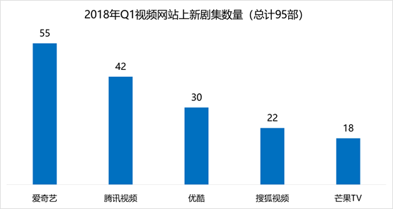 据统计,今年第一季度,爱奇艺、优酷、腾讯视频、搜狐视频、芒果TV5家头部平台共上线95部新剧。其中,爱奇艺一家就包揽了55部,占比近6成,比三四名的总和还要多,是第二名腾讯视频的1.3倍。