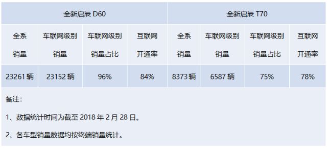 从销量占比来看,去年启辰D60和启辰T70组成的“智联双雄”的智联版销售占比大幅度领先同行对手。尤其是启辰D60上市至今,智联版车型销售占比高达96%,互联网开通率高达84%。