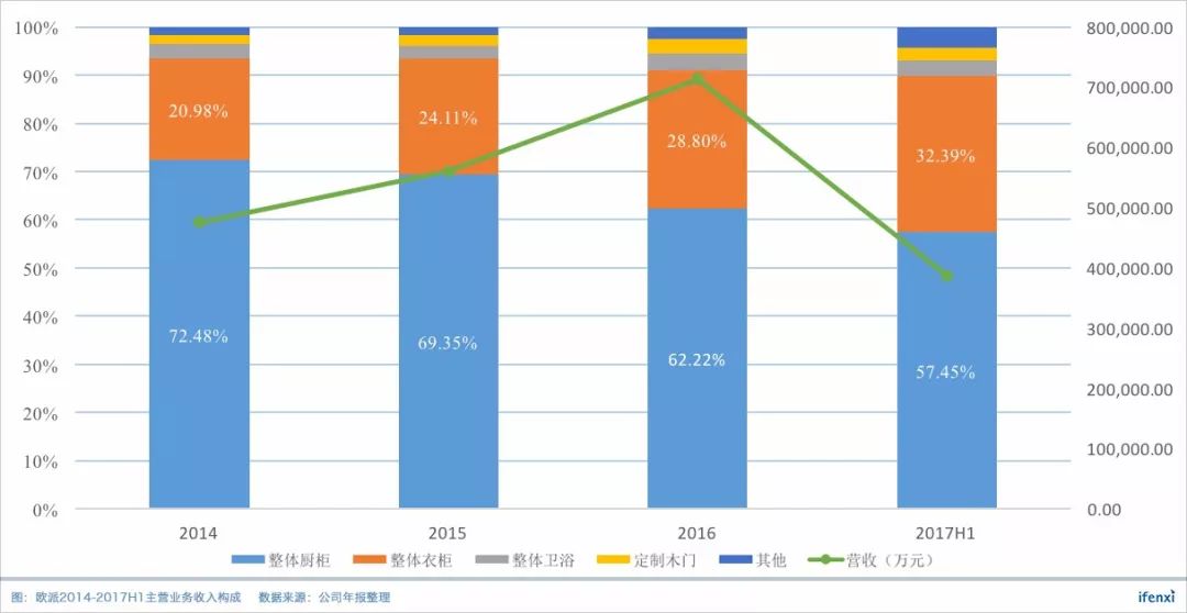 在此过程中,欧派的营收从2011年的22亿元增长到2016年的71亿元,年复合增速达26%。2017年3月,欧派登陆A股(股票代码:603833),并于11月入选沪深300指数和沪股通标的。
