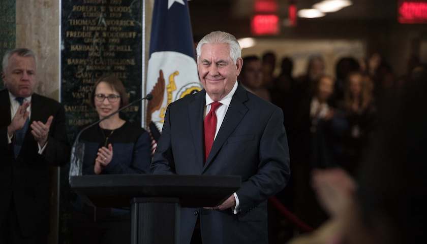 美国国务卿蒂勒森22日向国务院工作人员发表告别讲话。此时距特朗普总统通过推特宣布解雇蒂勒森已整整一周,但他仍将保留职衔至本月31日。