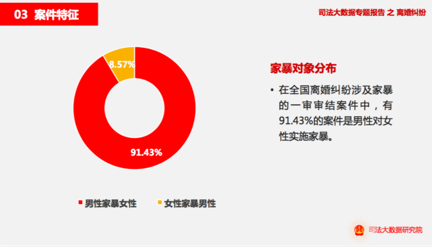 在全国离婚纠纷涉及家暴的一审审结案件中,有91.43%的案件是男性对女性实施家暴,家暴方式主要以殴打、打骂和辱骂为主,广东、贵州和广西涉及家暴而申请离婚的案件数量排名靠前。