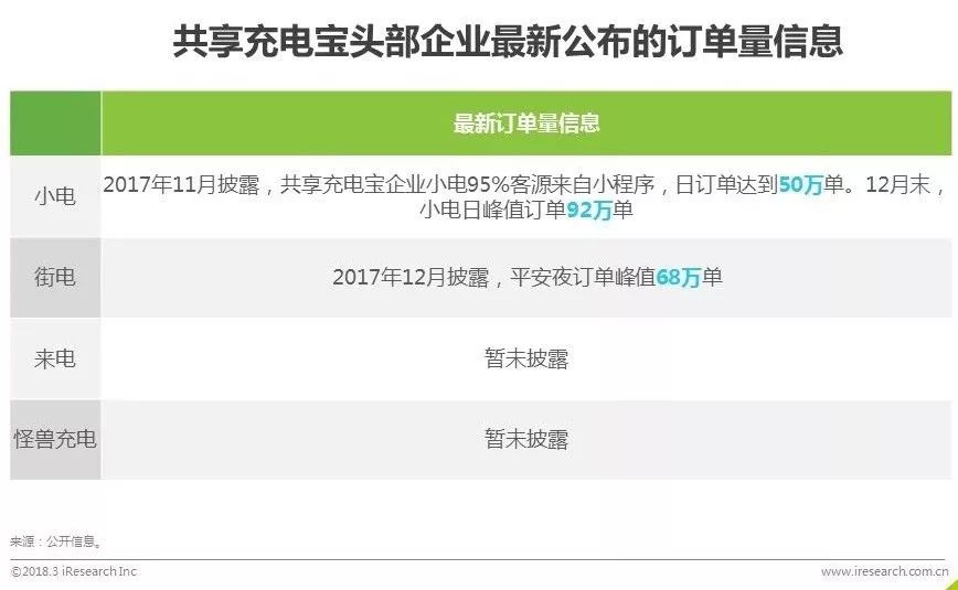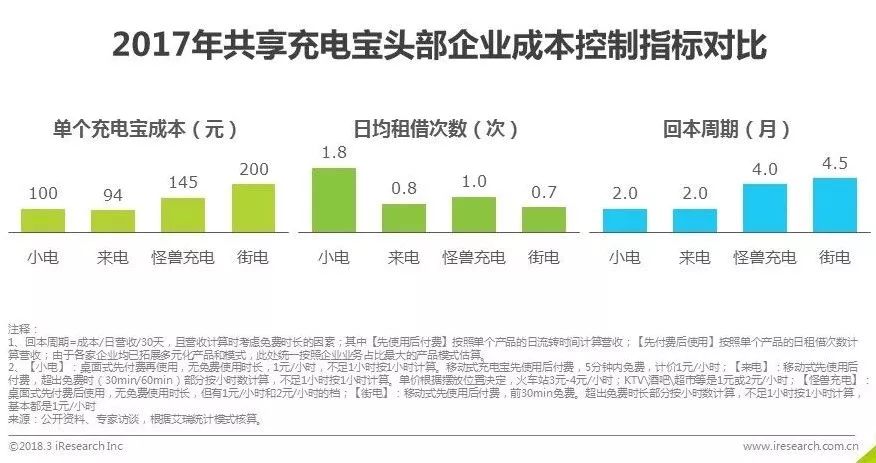 2017年共享充电宝行业兴起,并迅速成为投资者和创业者竞相追逐的新风口。从发展初期商业逻辑的饱受质疑,到资本入场后的高歌猛进,再到尾部企业的纷纷阵亡,短短一年间便完成了行业的迅速迭代与梳理,由狂热回归冷静。本研究通过分析共享充电宝行业融资、渠道、供应链、成本把控等各环节的发展现状,旨在为市场各方描绘行业发展的最新动态,并为其进一步的深入研究提供参考。目前,共享充电宝行业已进入中盘调整期,头部企业和二三线企业的差距逐步拉开,处于第一梯队的有小电、来电等。其中,小电在资金实力、成本控制、投资回报率及订单量等维度处于行业第一。