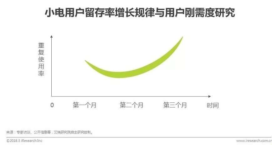 小电老用户重复使用率由2017年初2%提升至目前30%,数据增长约14倍。小电2017年用户重复使用率整体呈现“高-低-高”的周期性增长规律,以三个月为一个周期研究,用户使用率表现“第三个月>第一个月>第二个月”,符合刚需行业用户留存率“微笑曲线”,用户消费习惯形成,表明共享充电存在刚需消费特征。