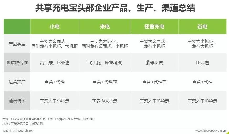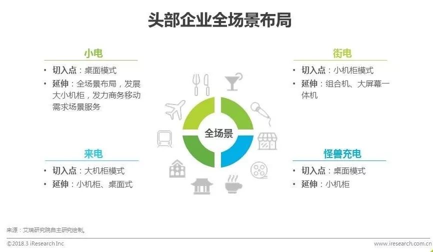 对于共享充电宝行业来说,场景之争等同渠道之争、规模之争,且有助于弱化非刚需的痛点问题。目前,各家均从单一场景领域向全场景扩展。不同场景的用户密度、行为特点等各异,单一的产品形态无法满足。去年中下旬开始,各家在丰富产品线上动作频频,来电从小机柜模式向大机柜延伸,街电反向由大到小,开始增设小机柜产品。小电和怪兽也纷纷进军小机柜领域。未来,各家的渠道之争将会从各自场景的深耕,转移到更大场景范围内的争夺。