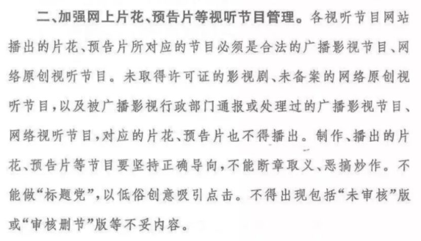 二、加强网上片花、预告片等视听节目管理;