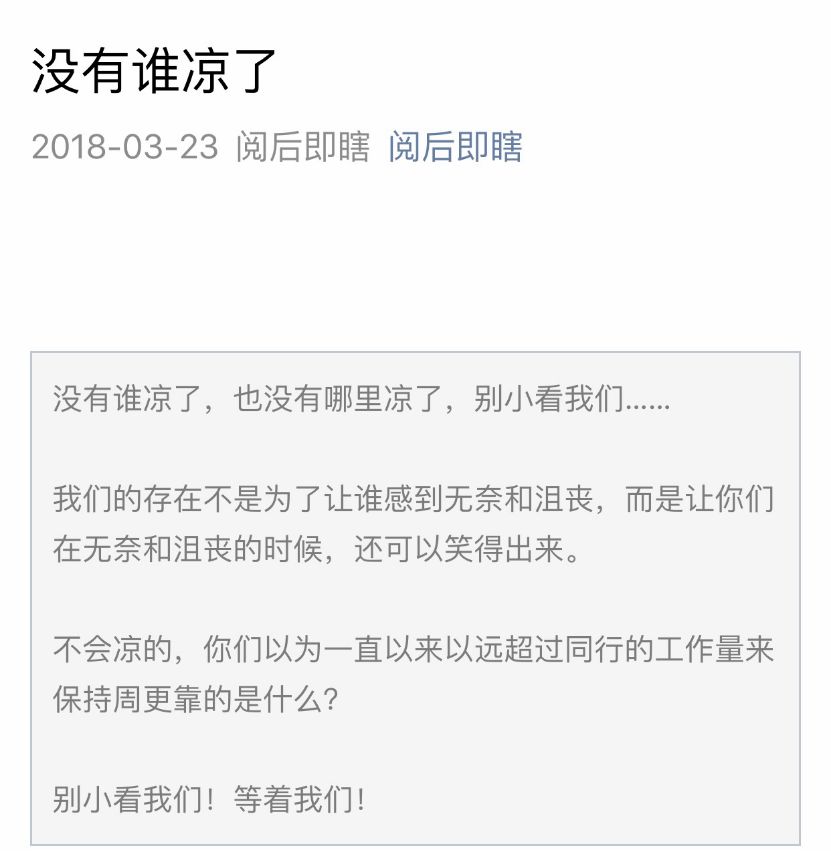 并于23日凌晨推送一条“没有谁凉了”的推文,借此安抚粉丝。
