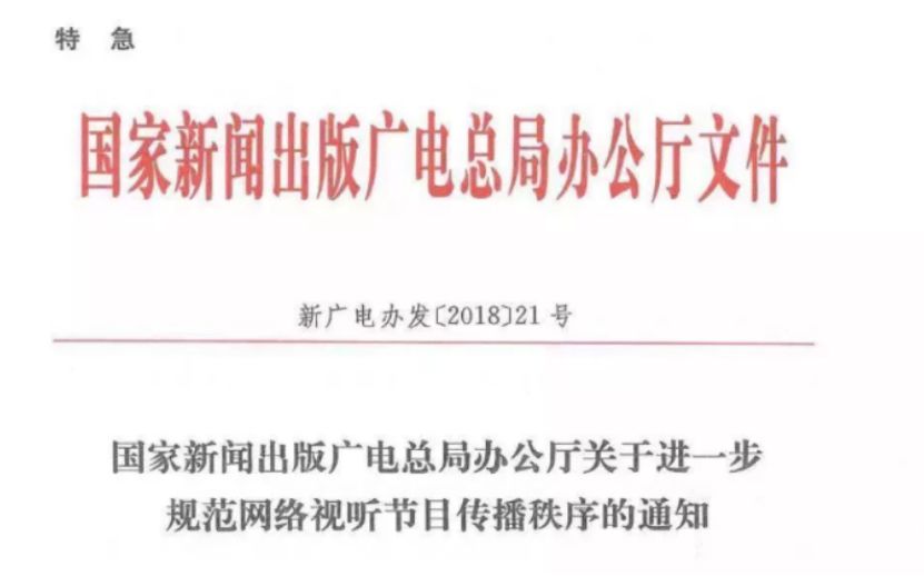 3月22日上午,一份来自国家新闻出版广电总局下发的特急文件《关于进一步规范网络视听节目传播秩序的通知》开始大范围流传。