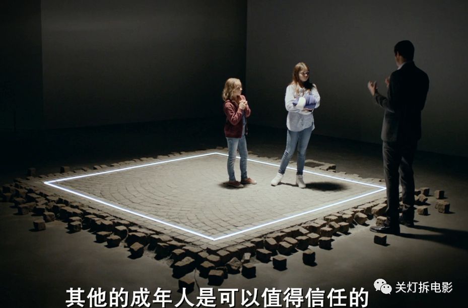 有趣的是,影片中的这个“方形”装置艺术并非空穴来风,而正是导演本人展出过的一个作品。