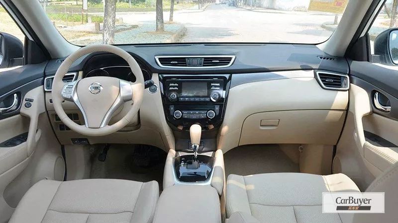 奇骏的内饰采用拼色设计,中控台各功能按键布局简单清晰,一目了然。而在内饰材质上大面积采用的软性材质,则极大提升了内饰的质感。平底造型的三辐式多功能方向盘动感更强。