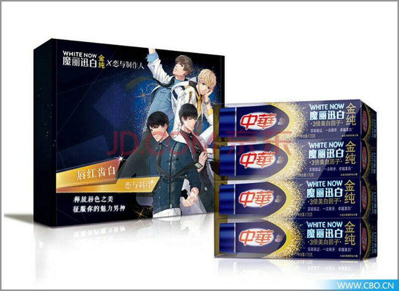 近期,中华牙膏在其官微上宣布,“恋与制作人X中华魔丽迅白”合作正式开启。继中华牙膏同热门IP影视剧《将军在上》进行IP合作之后,首次跨界二次元游戏。此次,中华牙膏以“皓齿倾心”为主题,推出了恋与礼盒,礼盒外包装以四大男主为人物形象,内含四支冰晶双重薄荷牙膏,并赠送20元游戏礼包和中华随身镜。扫描礼盒上的二维码,还可以解锁男主的高甜密语,简直套路满满。