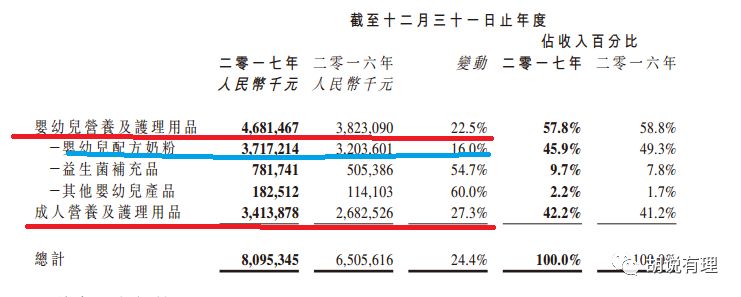 1、婴幼儿业务收入46.8亿,奶粉卖了37亿