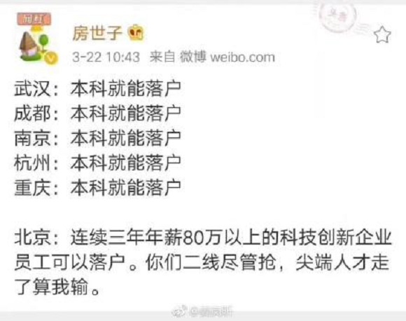 武汉抢人,成都抢人,南京来面试就给补贴,西安博士落个户民警还来专车接送……随着二线城市们抢人大战愈发白热化,向来只发愁人太多的北京也终于坐不住了。