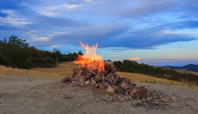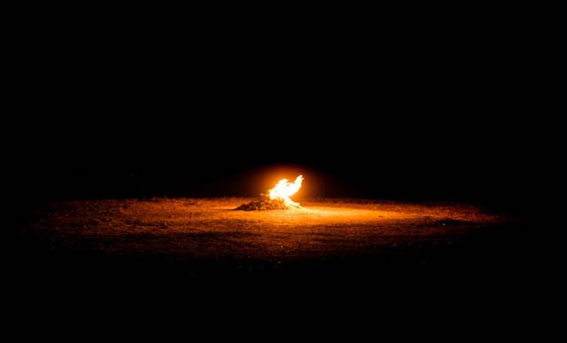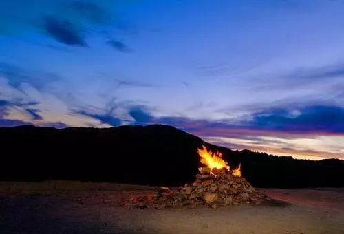 这座火山喷出的火焰在山顶熊熊燃烧,
