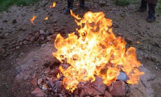 一堆石碓包裹着的氢气从地下漫出时和氧气摩擦,