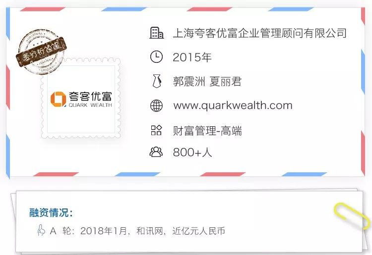 成立于2015年的夸客优富,脱胎于夸客金融的财富管理业务,拥有私募基金管理人牌照,依托夸客金融的P2P类固收产品逐渐成长,2017年交易规模逾200亿元。面对巨大的市场空间和逐渐收紧的监管政策,夸客优富下一步将向资产多样化和服务创新的方向迈进。