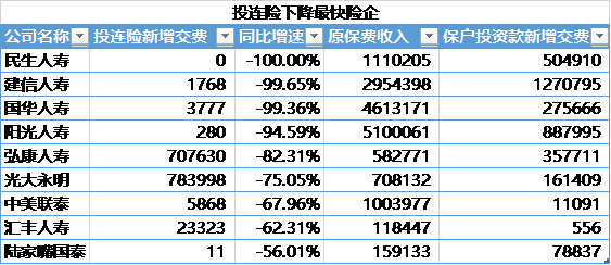 根据界面新闻整理,上述9家公司去年投连险收入下滑最快,下滑幅度都在50%以上。值得注意的是,新增规模减少较大的主要为中资保险公司,根据华宝证券统计,中资保险公司投连新增费规模同比减少了51.47%。“面对监管政策变化,中资保险公司调整更为迅速”,业内分析人士指出。