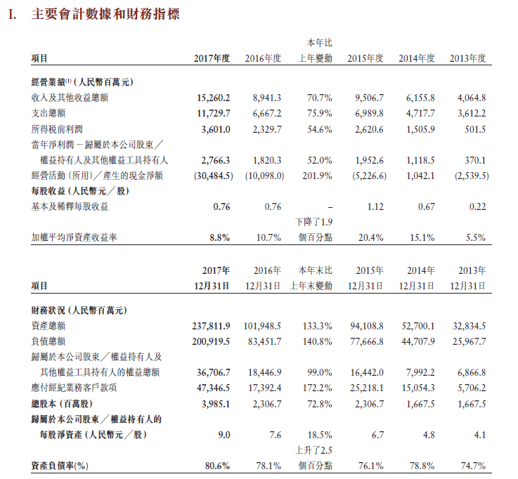 近日,中金公司(股份代号 : 3908 )在港交所披露了2017年年报。报告期内,公司合计实现收入及其他收益人民币1526亿元,同比增长70.7%;实现净利润人民币27.7亿元,同比增长52%,加权平均净资产收益率8.8%。