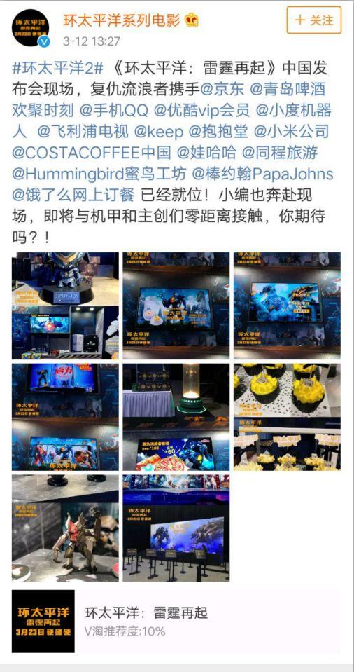 据统计,《环太平洋2》中的中方联合营销品牌多达15家,从棒约翰的环太平洋套餐到小米定制旅行箱,涵盖衣食住行方方面面。优酷VIP会员、手机QQ、百度小度机器人纷纷在列。这其中,最为亮眼的非腾讯、京东两家金主莫属,而随后青岛啤酒、小米、哇哈哈等中国品牌也在影片中轮番出现。