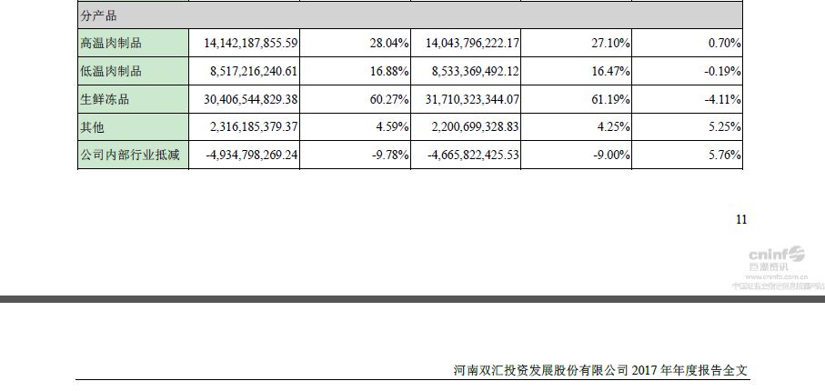 从数据对比就能得知,作为收入占比最高的生鲜冻品业务表现不佳,应该是双汇发展2017年业绩下滑的“罪魁”。