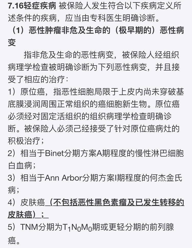 举个例子,如上图包含原位癌、皮肤癌(不包括恶性黑色素瘤及已发生转移的皮肤癌)等6种恶性肿瘤属于微医保·重疾保障的除外责任,这部分也同属于好医保·重疾保障(全面版)100种重大疾病的除外责任。