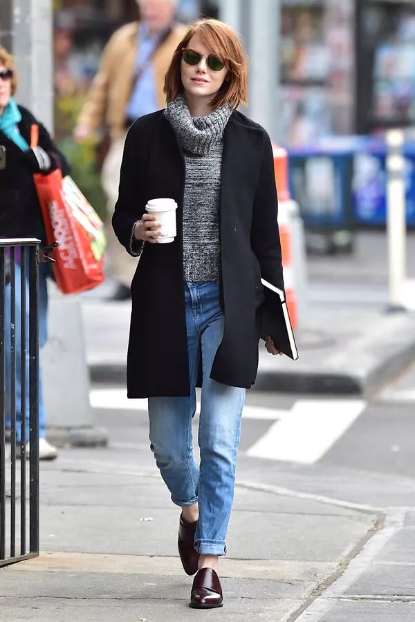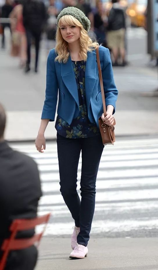 首先艾玛对于不同场合的着衣有着非常明确的划分和独立的想法。在日常出街,购买一些简单食材或一小杯咖啡时,黑白灰、藏青和卡其,这些我们之前提到的百搭色配以柔软舒适的材质,再时不时配上一两件极为精致和特别的单品,比如锃亮的枣红色穆勒鞋,薄荷绿的海马绒线帽,或是印花的打底垂坠衬衫,都能让整体穿搭变得风格突出而风趣十足。