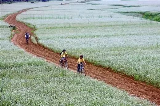 沿着荞麦花田骑行或漫步,群山围绕之间,没有车水马龙,没有喧嚣繁华,只有泥土花香和惬意……
