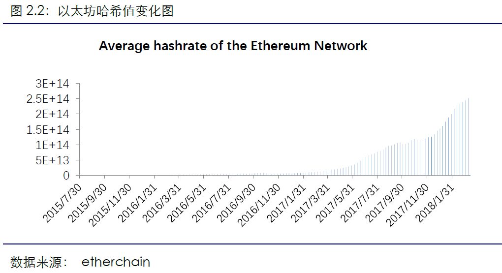 挖矿难度持续提升。2018年3月18日至3月24日,比特币本周平均挖矿难度为3.46T,BTC.com预测接下来一周的挖矿难度为3.54T,环比上升2.26%。以太坊本周全网平均挖矿难度为3.26P,环比上升1.58%。