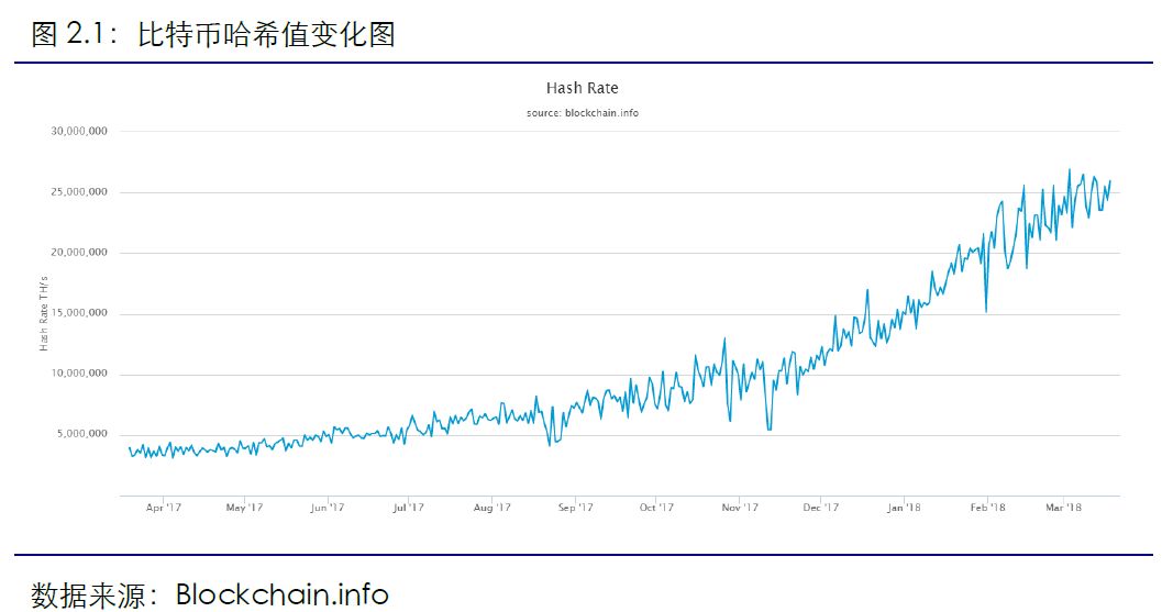 本周比特币算力略有下降,以太坊算力继续上升。2018年3月18日至3月24日,比特币全网哈希值平均值为24.67 EH/s,相比上周环比下降1.22%。