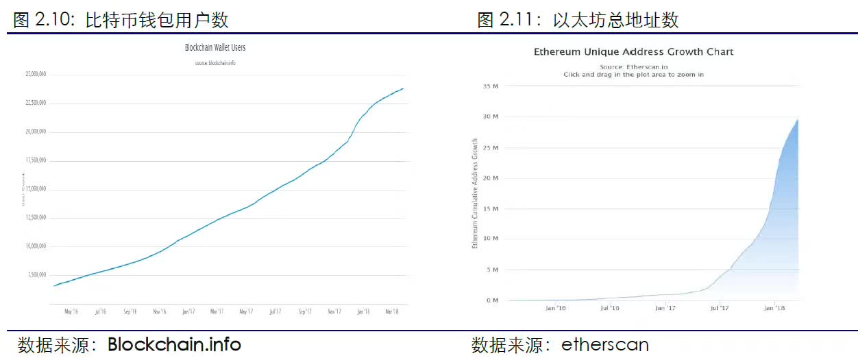本周比特币和以太坊地址增速下滑。根据blockchain.info数据计算,截止3月25日,blockchain钱包用户数达23834589个,本周新增125601个,与上周新增数相比下降4.2%。