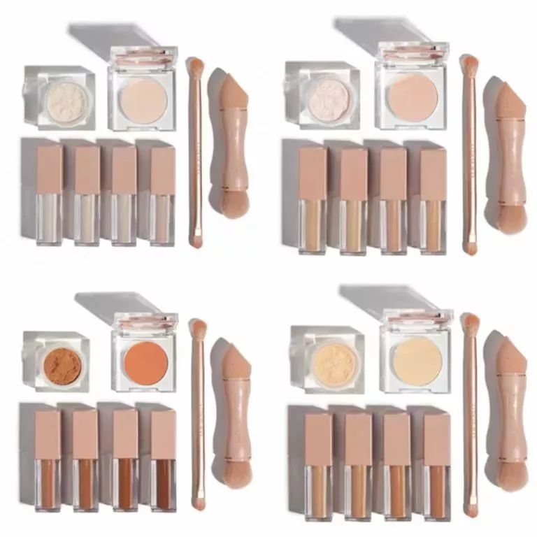 Kim Kardashian推出的遮瑕膏有16个色号,产品分为四类:轻、中、暗、深。在每个类别中,有四种液体遮瑕膏(两种冷色调和两种暖色调),一种散粉以及一种发亮的粉末。产品单价18美元(RMB115),整个套装(包括遮瑕膏和两支笔)的价格定在80美元(RMB505)。