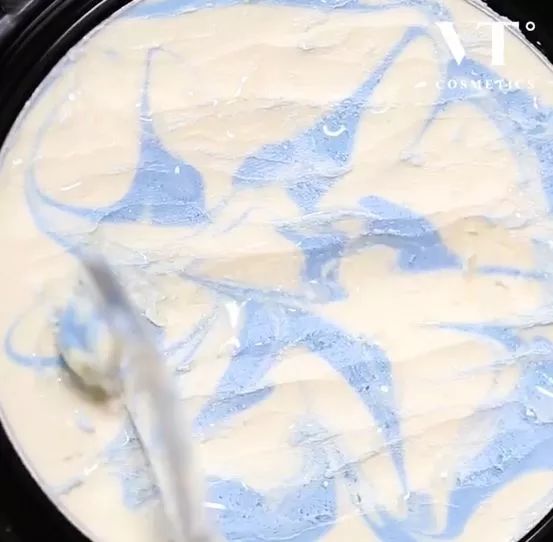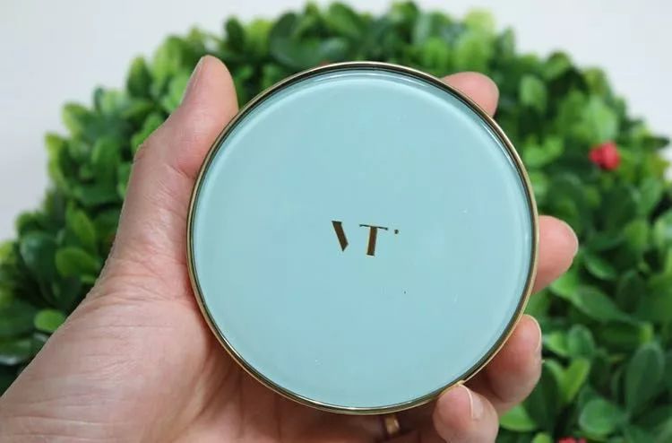 范特VT气垫BB外观是清凉的蓝色,内心是蓝白相间的拉花图案。在防晒的基础上增加了提亮肤色、抗皱的功效,膏体刮一下就会出水珠,有冰爽和保湿补水的效果。