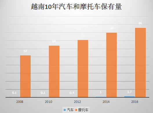 ▲越南十年来汽车和摩托车的保有量