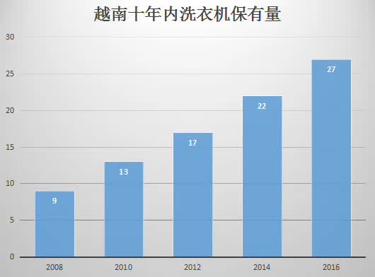 ▲越南十年来洗衣机的保有量