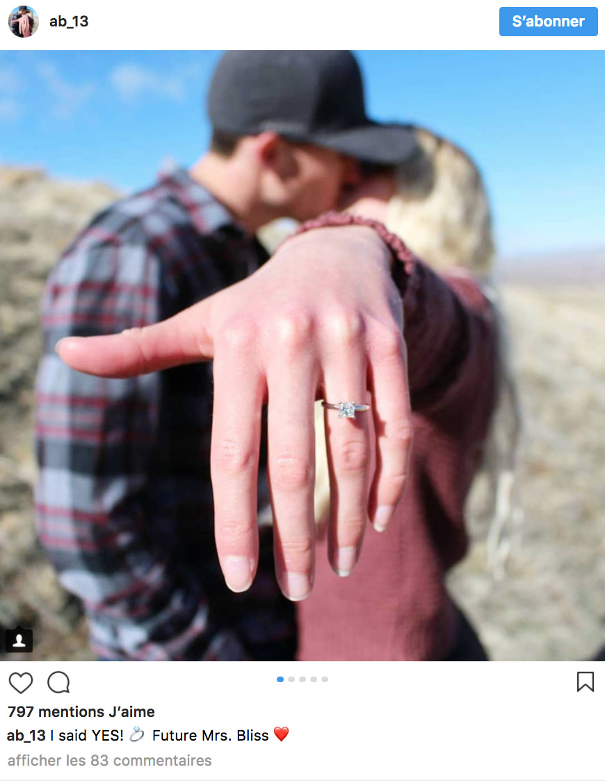 向各位介绍一对有爱的新人,本周妹子 Levi Bliss 接受了男友 Allison Barron 的求婚,两人喜结连理:
