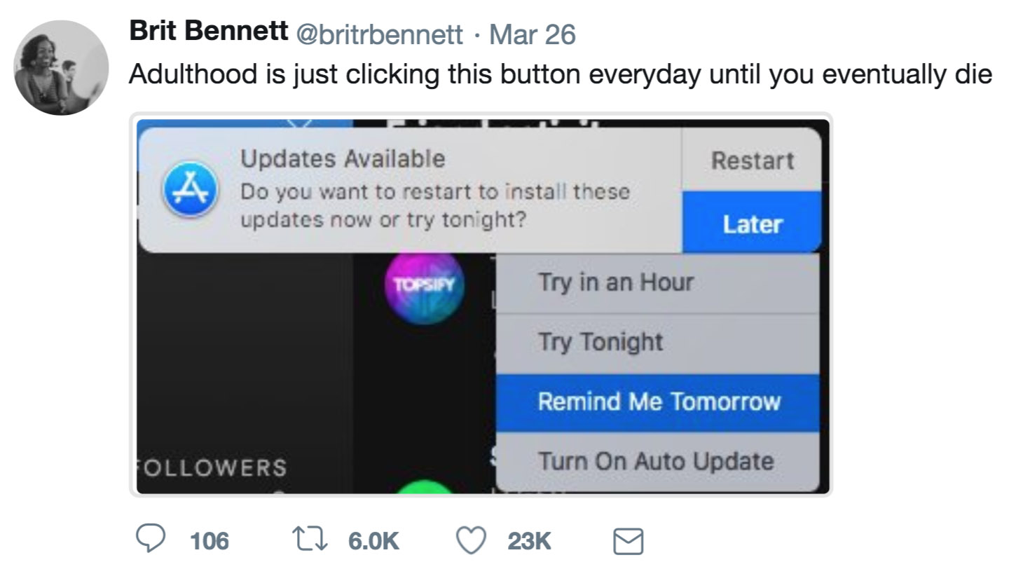 所谓长大,就是你每天点一次mac更新的“明天提醒我”直到入土