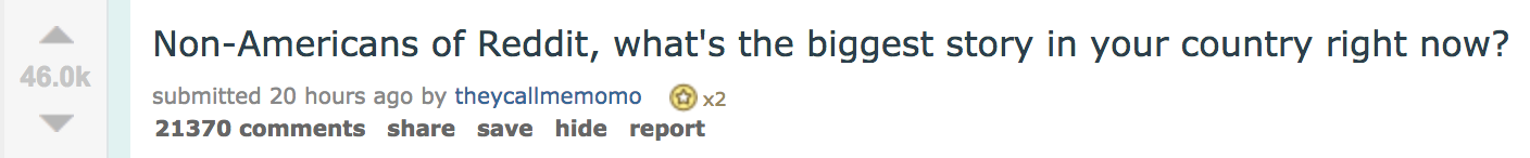 Reddit上的非美国网友们,你们国家现在有什么大事?