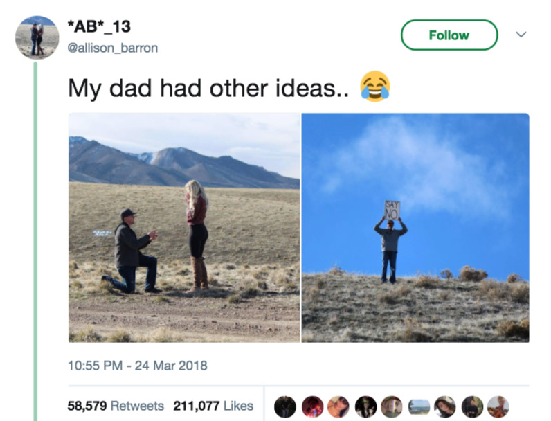 只不过随后走红的并不是他俩,而是妹子的老爸。这位老父成功代表了千万名看着自己的宝贝女儿“落入别人手里”的父亲,表明了自己的坚定立场。