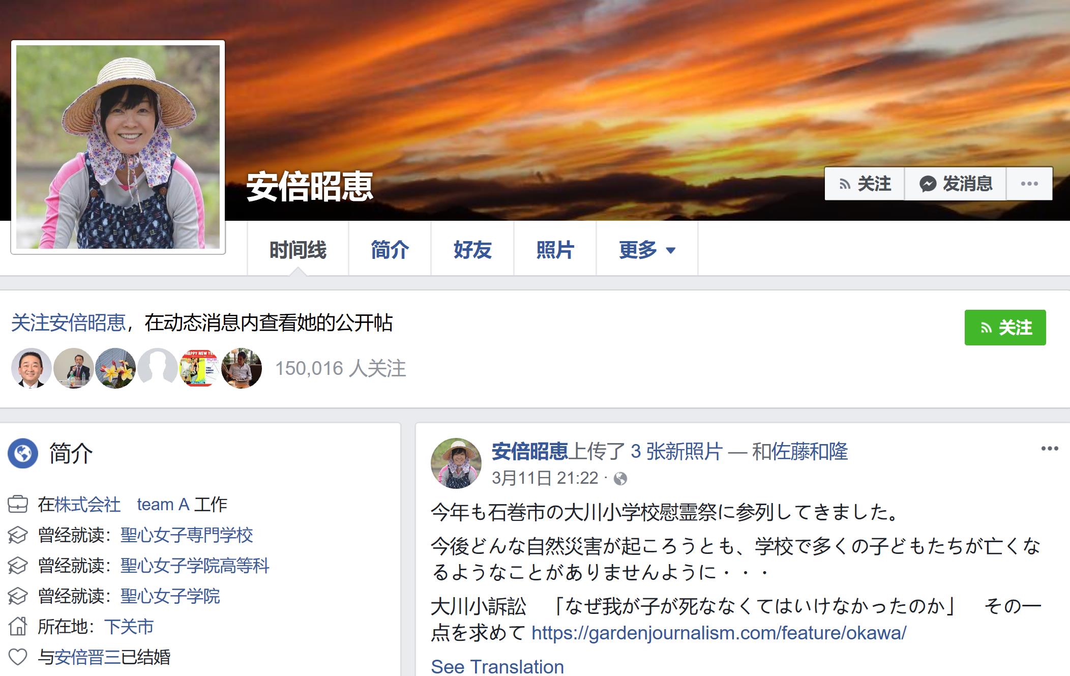 安倍昭惠身在何处,心里究竟有什么想法,这些都应留待她自己来解答。或许她会在刚刚突破15万粉丝的Facebook账号上正式就“地价门”道歉,或许她会当作一切都没发生过,继续在社交媒体发布首相先生不怎么好看的照片,并为丈夫点赞。