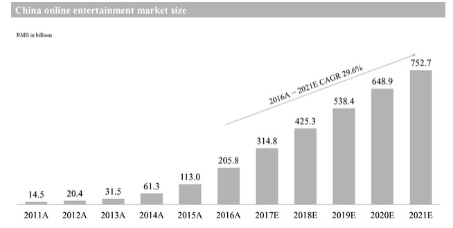 招股书显示,B站2017年第四季度的月度活跃用户为7180万,其中有81.7%的人出生于1990-2009年之间,他们被称为中国的“Generation Z”(Z世代)。预计到2020年,他们将贡献中国在线娱乐市场62%的消费。