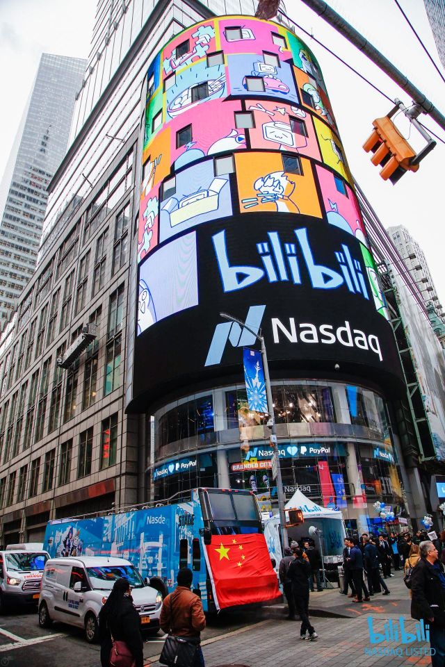 纽约时间3月28日,B站登陆纳斯达克。B站董事长陈睿和B站的管理层,以及8名B站的UP主站在台上,特意感谢员工、感谢用户,说道,“让我们一起,哔哩哔哩,干杯!”,并保证:“bilibili永远会是用户最喜爱的bilibili”。