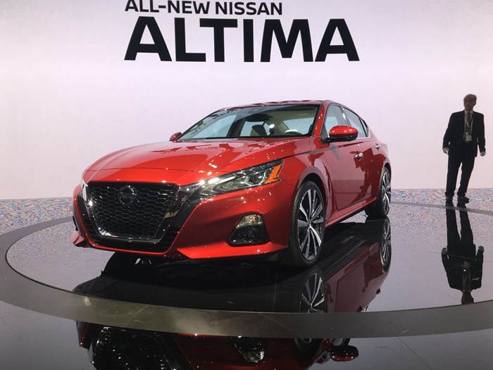 新一代日产Altima亮相本届纽约车展,后者是国产车型日产天籁的原型车。新车在外观方面大幅借鉴日产Vmotion 2.0概念车的设计语言,前脸的V-motion进气格栅造型更加张扬,两侧LED大灯组的角度非常尖锐。新车内饰同样改变明显,中控台采用时下流行的悬浮式多媒体大屏幕,两侧还提供了悬空控制,以方便驾驶者操作。车内搭配了三幅式的运动方向盘,采用传统机械仪表与数字仪表相结合的仪表盘设计。